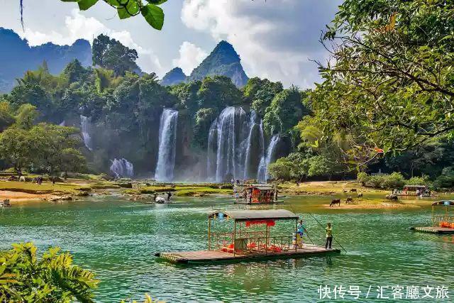 德天跨國(guó)大瀑布橫跨中國(guó)、越南兩個(gè)國(guó)家,是亞洲第一、世界第四大跨國(guó)瀑布。瀑布?xì)鈩?shì)磅礴、蔚為壯觀,70米高落差,飛瀉而下,一波三折,形成三級(jí)瀑布,原生態(tài)的自然景觀。電視連續(xù)劇《花千骨》、《酒是故鄉(xiāng)醇》的拍攝地之一。