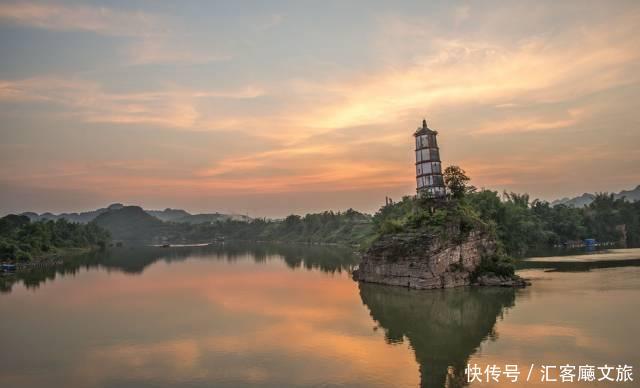 在清幽秀麗的左江中游, 在崇左市東北方向3公里處,有一叫鰲頭山的小島,島上挺立著一座古老的斜塔,人稱歸龍塔,是左江河畔的一絕。