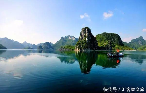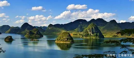 渠洋湖是一個(gè)大型的喀斯特高原湖泊水庫。站在湖中,只能隱約看到東西兩邊的部份景色,你要一睹整個(gè)湖的全貌,就得泛舟北上,置身其中,慢慢領(lǐng)略,或沿著湖邊公路北上15公里走馬觀花方可如愿。